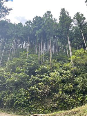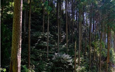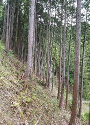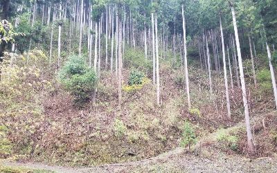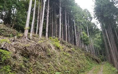 樹齢40〜50年くらいのこの森を、林道の整備・補修を行いながら、間伐作業を行います。