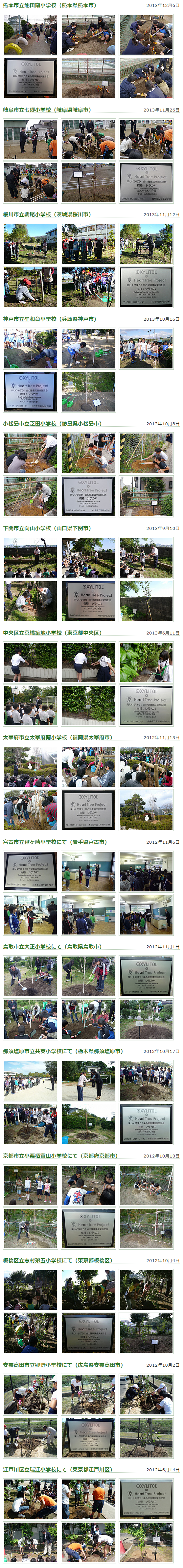 ■2012・2013年度「楽しく学ぼう!歯の健康講座」×植樹式 植樹地一覧 植樹本数 29 本 植樹人数 855 人 植樹場所 15ヶ所 2012、2013年度 ページトップへ 楽しく学ぼう!歯の健康講座 ■ 過去の植樹地一覧 2016年度 2014年・2015年度 2012年・2013年度 2010年・2011年度 2008年・2009年度